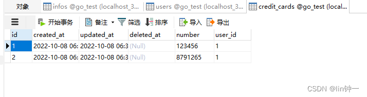 type CreditCard struct { gorm.Model Number string UserName string}4)重写引用