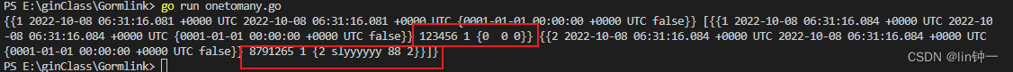 func init() { var err error //我这里用到数据库是mysql,需要配置DSN属性[username[:password]@][protocol[(address)]]/dbname[?param1=value1&...¶mN=valueN] dsn := "root:123456@tcp(127.0.0.1:3306)/go_test?charset=utf8&parseTime=True" db, err = gorm.Open(mysql.Open(dsn), &gorm.Config{}) if err != nil { panic("failed to connect database") }}1、Belongs To 属于
