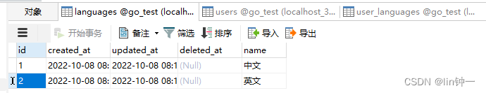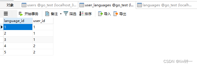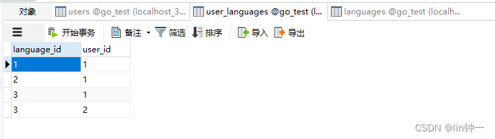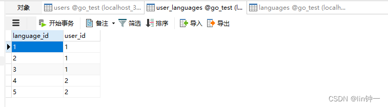 type Language struct { gorm.Model Name string}当使用 GORM 的 AutoMigrate 为 User 创建表时,GORM 会自动创建连接表。 某种意义上这种其实还是